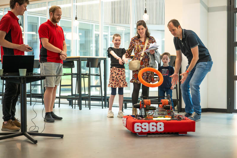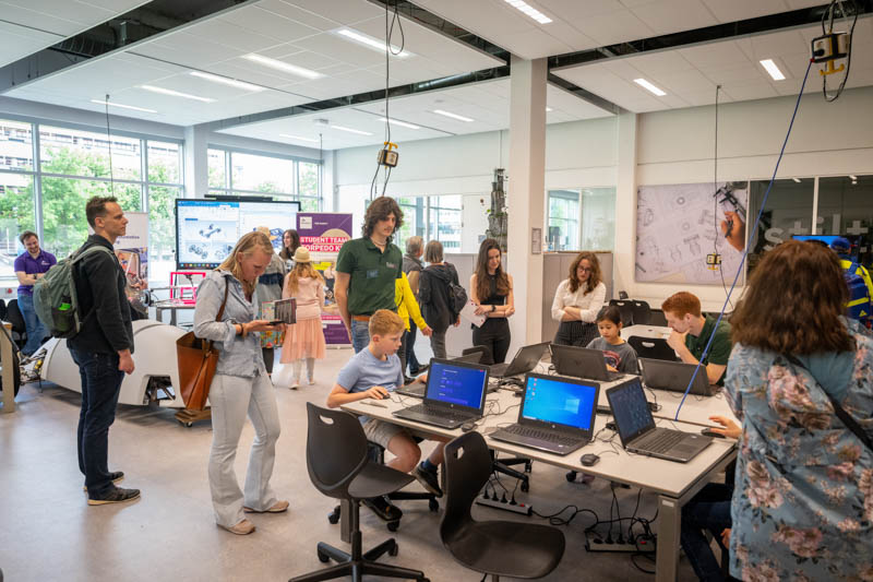 Niet alleen straalde het enthousiasme van de gezichten van de aanwezige jongeren. Onze eigen studenten, die bezoekers begeleiden bij de activiteiten, raakten niet uitgesproken over de mogelijkheden van techniek.