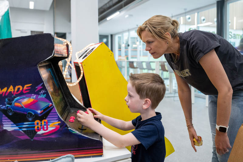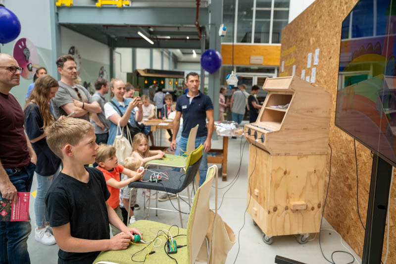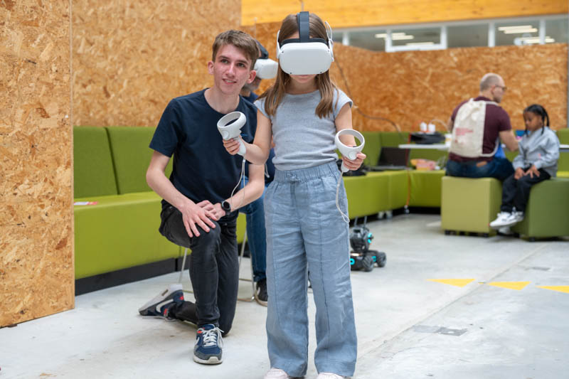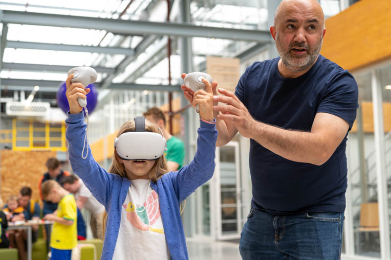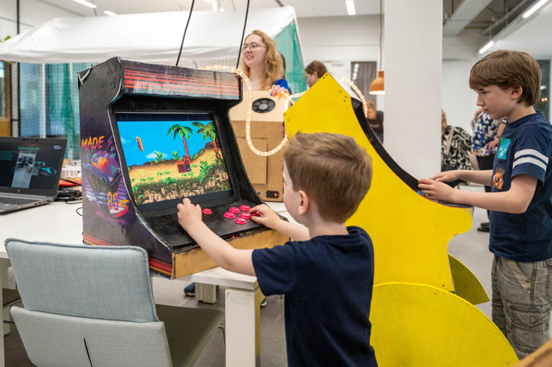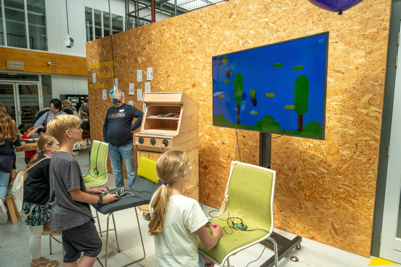 Bezoekers waren van harte welkom bij de Brainport Industries Campus voor een breed scala aan leuke en leerzame activiteiten. Ze leerden solderen, battlen met robots en programmeerden een robotauto. Maar de activiteit die de meeste indruk maakte was dat bezoekers een videogame konden spelen met hun eigen ontworpen avatar in de hoofdrol. Hoe vet is dat!