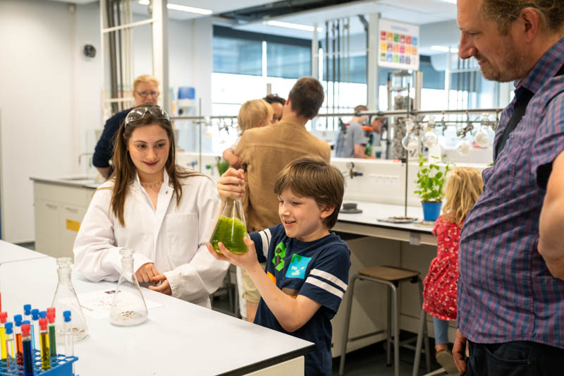 Aan de andere kant van Eindhoven stapten bezoekers de wereld binnen van innovatie en ontdekking bij de TU/e campus. Ze experimenteerden met de nieuwste technieken, terwijl ze deelnamen aan verschillende activiteiten. Waar de ene bezoeker testte of hij geïnfecteerd was met een virus, bewonderde een andere bezoeker de indrukwekkende voertuigen, ontworpen door studententeams.